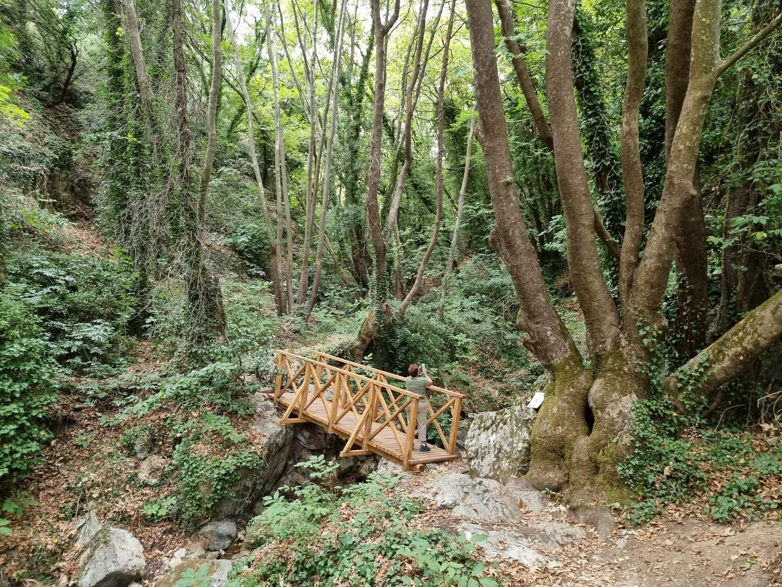 A short and easy trail ideal for beginners and families. This path winds gently through the forest above Portaria and is steeped in local mythology—said to be the path once walked by the wise centaurs of Pelion. You’ll cross charming stone bridges, hear the sound of flowing water, and feel completely immersed in nature.
